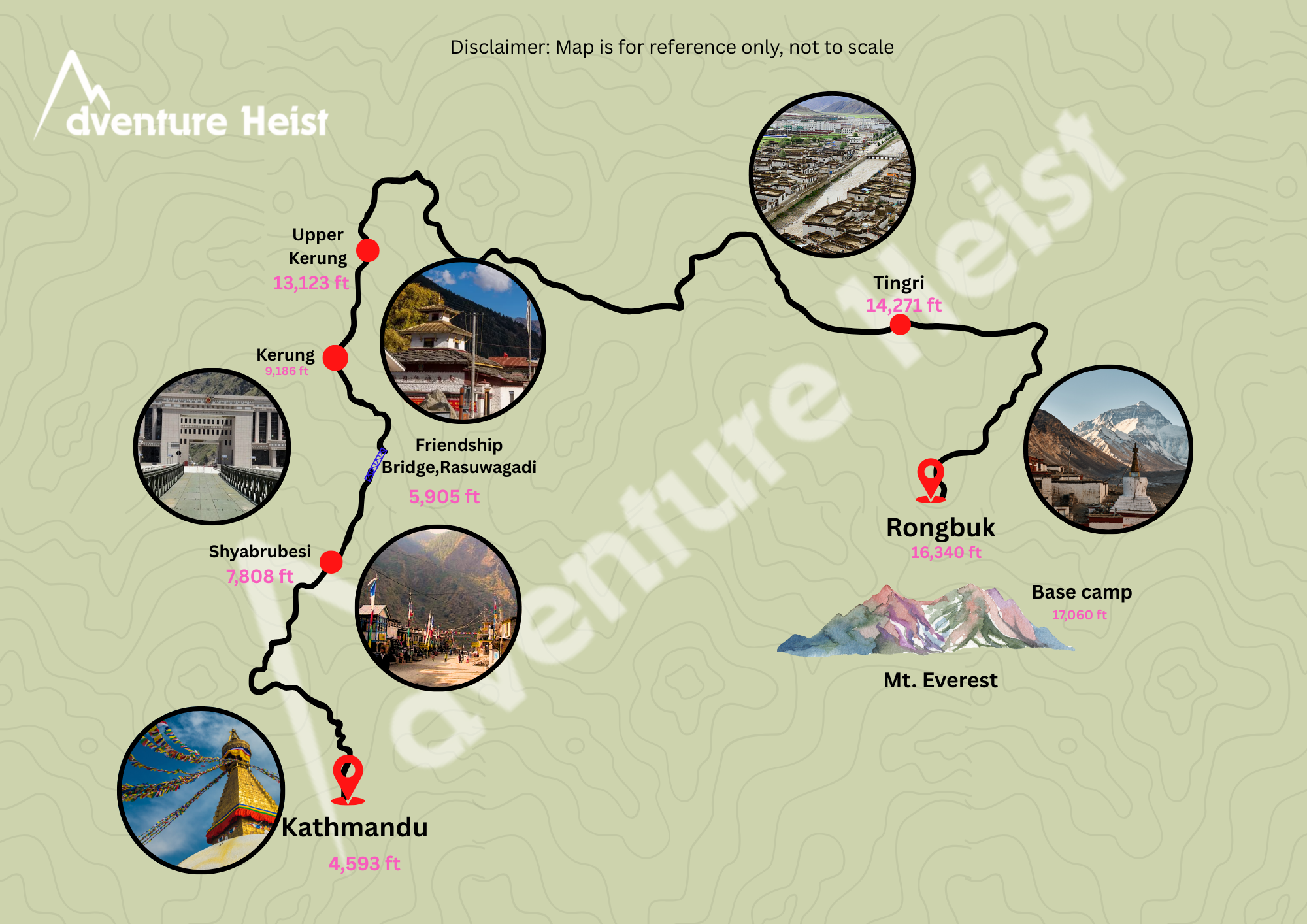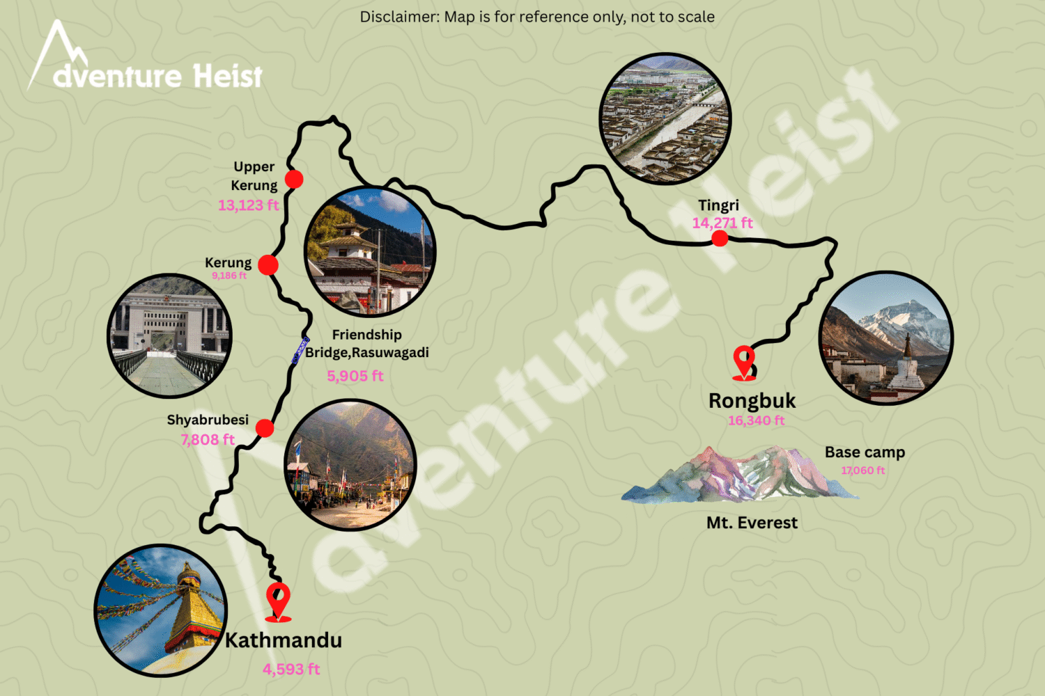 Today you’ll complete your epic loop by crossing the Nepal-Tibet border once again at Rasuwagadhi. After completing immigration and customs procedures, you will say farewell to your Tibetan guide and re-enter Nepal. Ride along the same scenic route through Shyabrubesi, Dhunche, and Nuwakot before finally reaching Kathmandu. You’ll arrive back in the capital city in the evening, bringing your high-altitude adventure full circle.