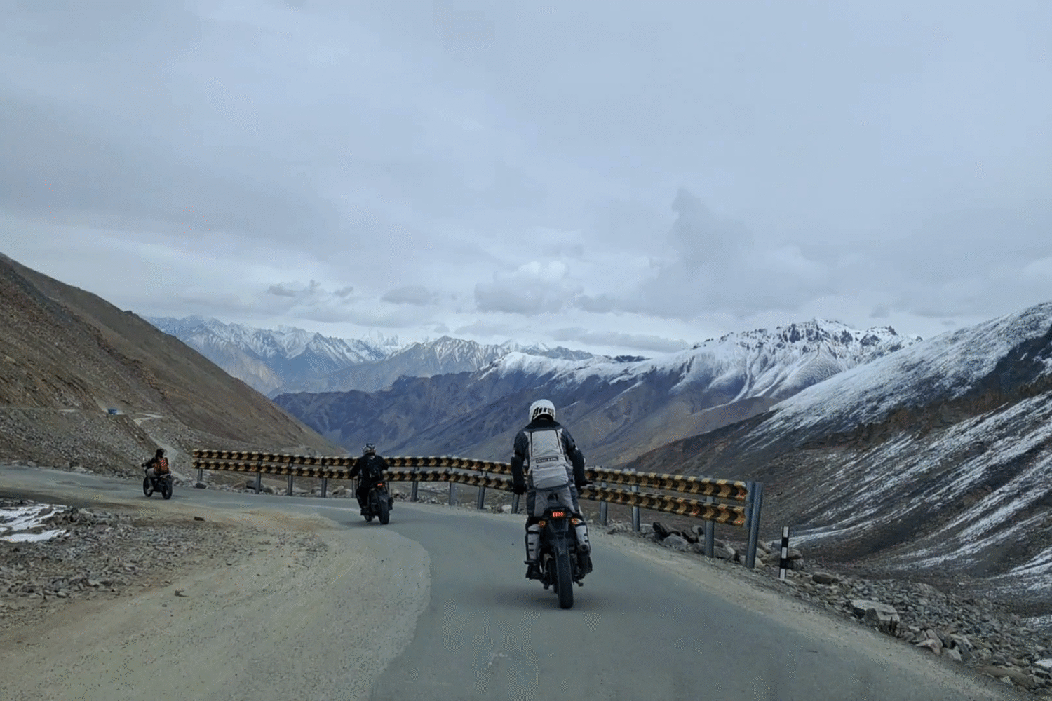 Leaving Hanle, you ride towards Tsomoriri Lake via Nyoma and Mahe. The route offers a mix of rugged terrains and stunning landscapes, leading to the tranquil shores of Tsomoriri, situated at 4,522 metres. The lake’s pristine blue waters set against the backdrop of snow-capped peaks create a breathtaking scene. Korzok Monastery, located on the western bank, adds a spiritual touch to the setting. Exploring the lake’s surroundings and interacting with the monks provides a serene and enriching experience.